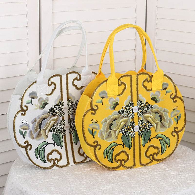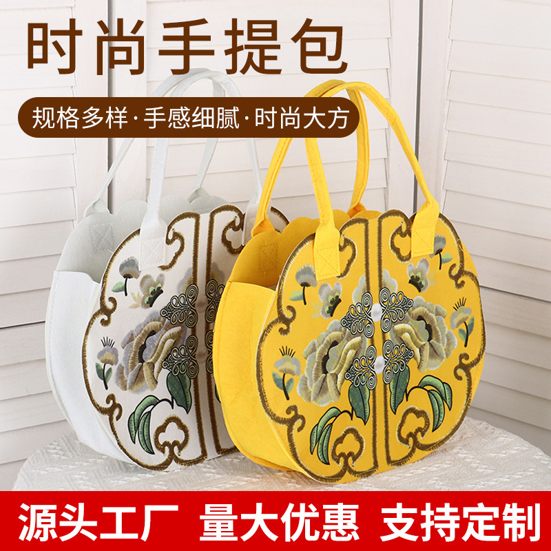 新款高颜值国风手提毛毡包学生大容量购物袋爆款新品伴手 礼手拎