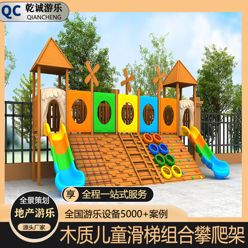 幼儿园户外无动力木制组合滑滑梯设施木质攀爬架儿童拓展体能训练