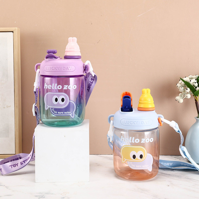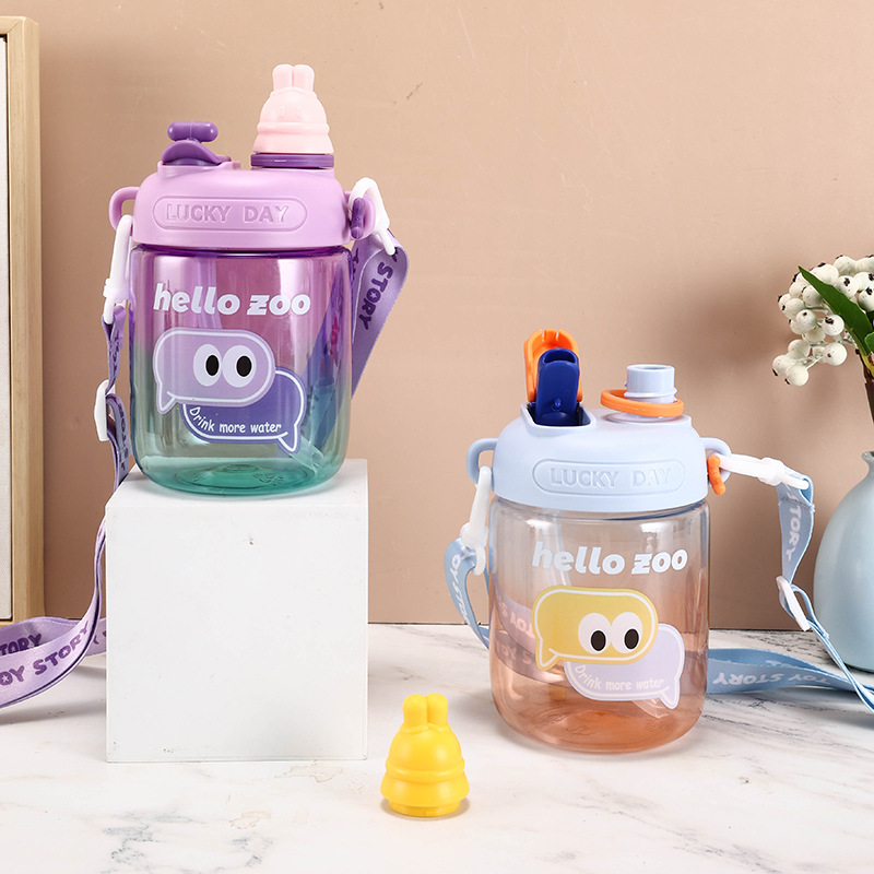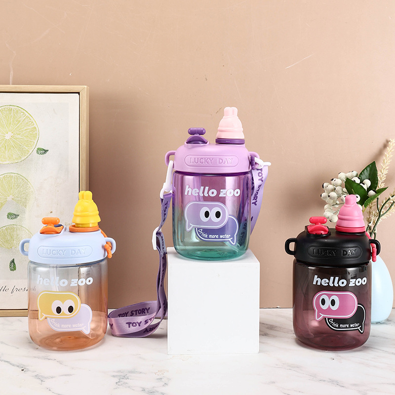 儿童水杯夏天可爱幼儿园塑料吸管水杯子女孩小学生上学大肚杯定制