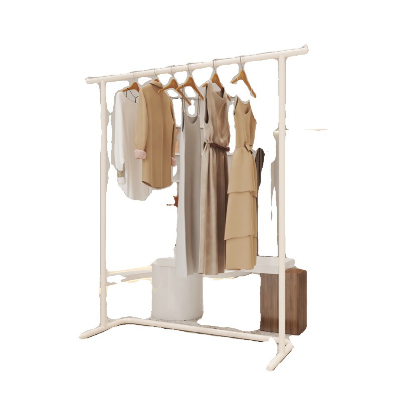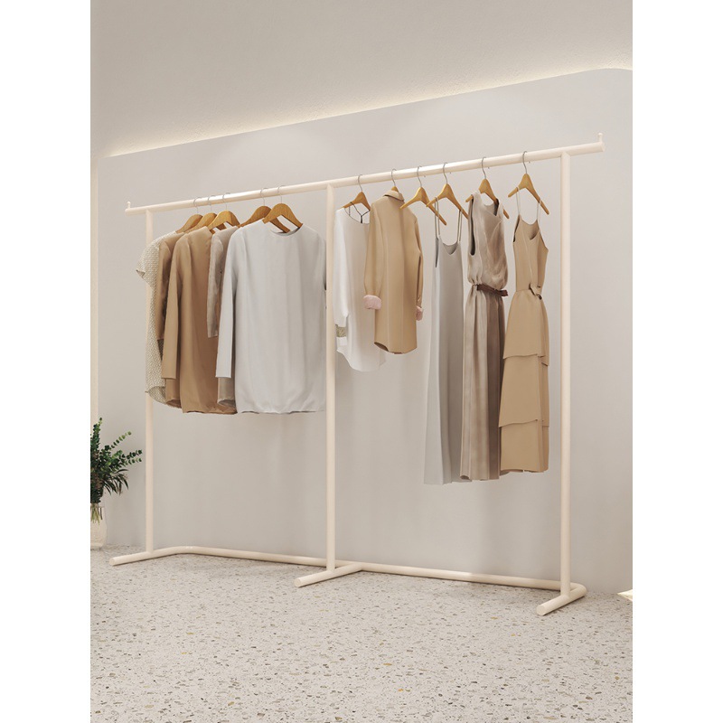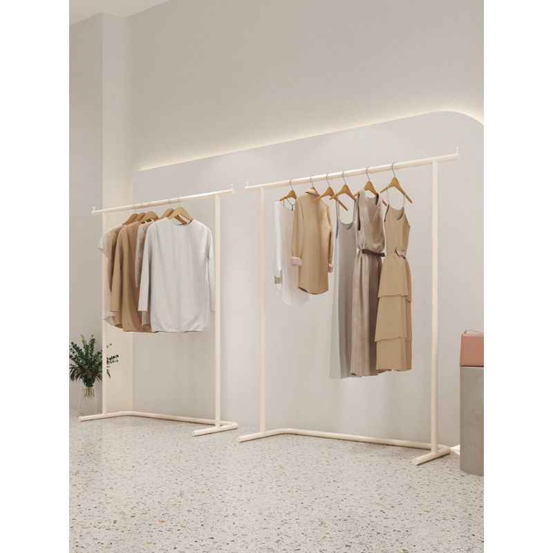 服装店专用展示架陈列架奶白色落地式不锈钢女装店侧挂衣架服装架
