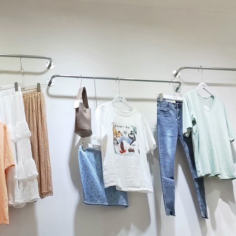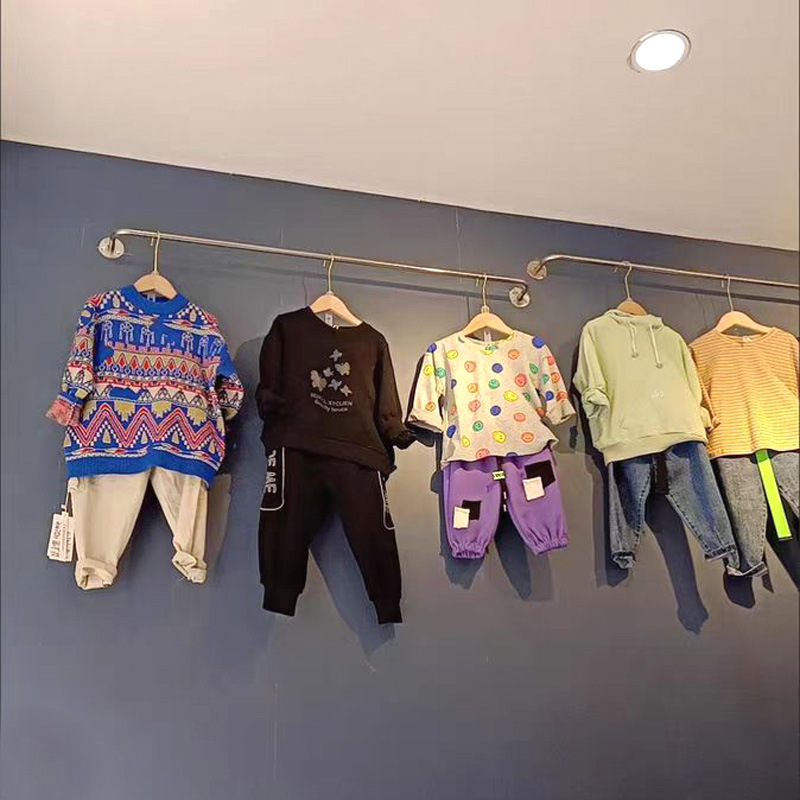 服装店上墙不锈钢拉丝银实心正挂简约壁挂式女装挂衣服架子展示架