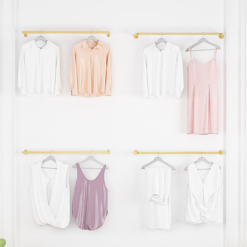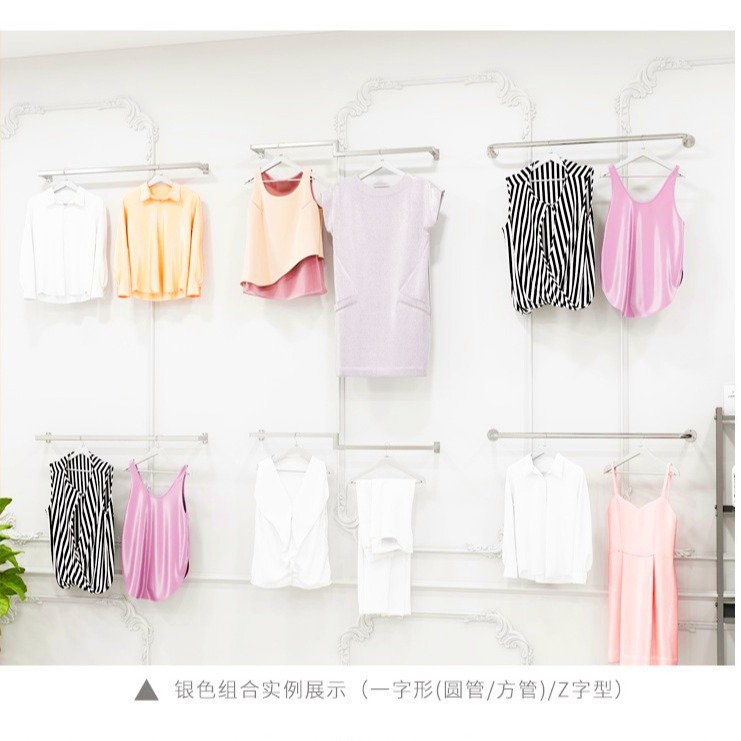 服装展示架童装货架简约上墙横杆男女装壁挂式正挂组合金色挂衣架