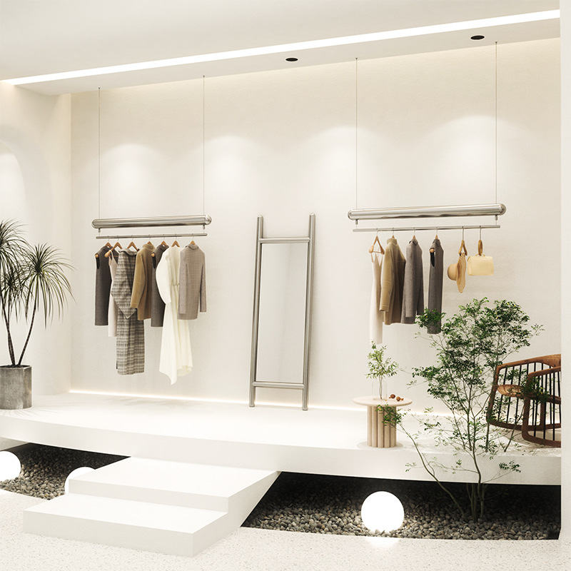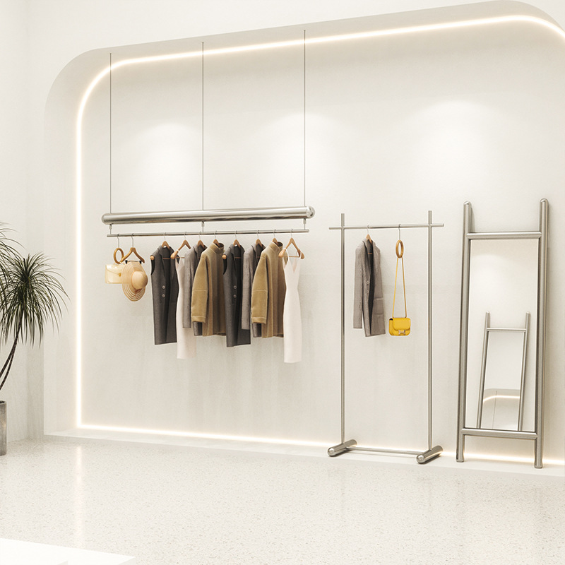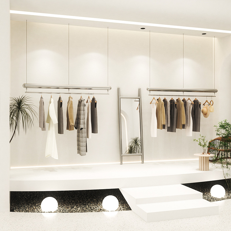 服装店婚纱礼服男女装不锈钢拉丝简约吊架悬挂吊顶挂架可调节钢丝