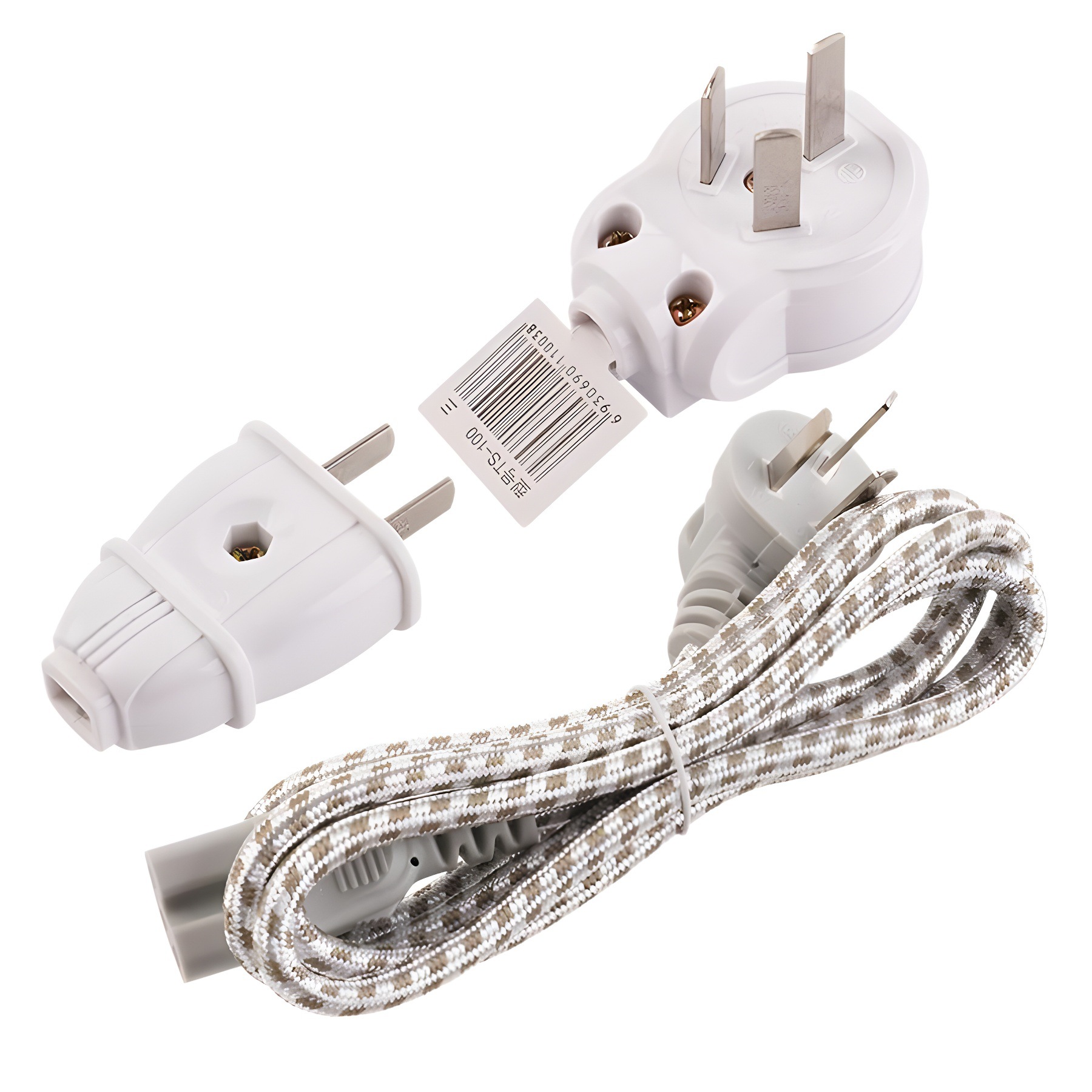 二三脚插头水壶线线耐高温国标显示器微波炉插头线编织电源线电缆