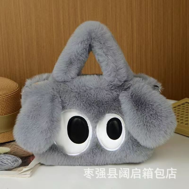 卡通毛毛包女2024冬季新款大眼萌毛绒手提包可爱小狗包单肩斜挎包