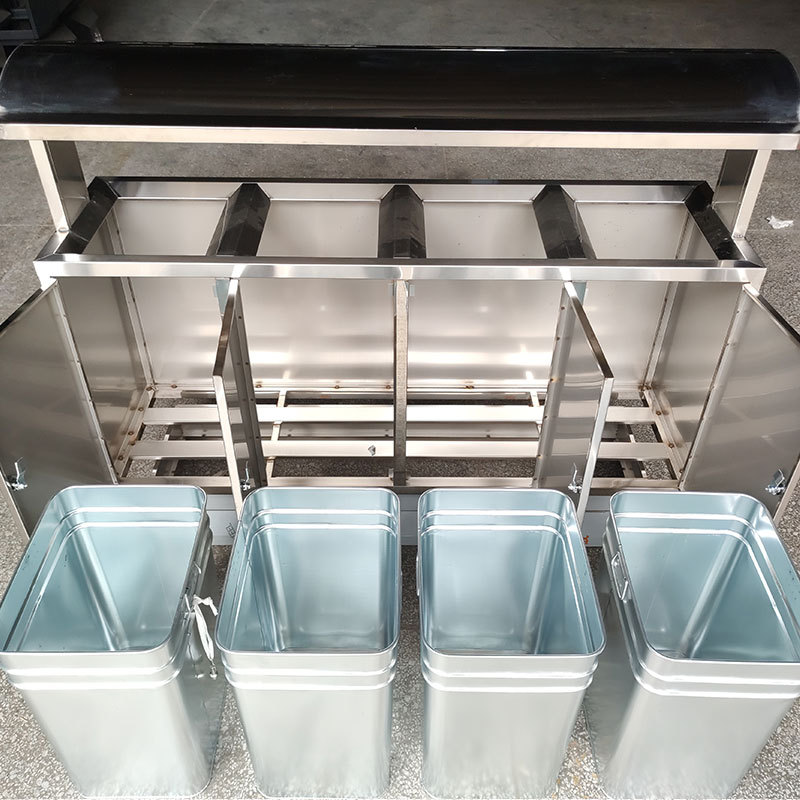 广东户外公园景区市政街道电梯口商用不锈钢镀锌板分类垃圾桶厂家