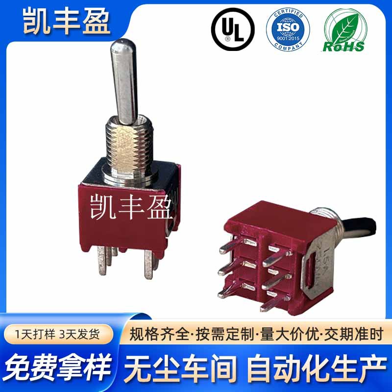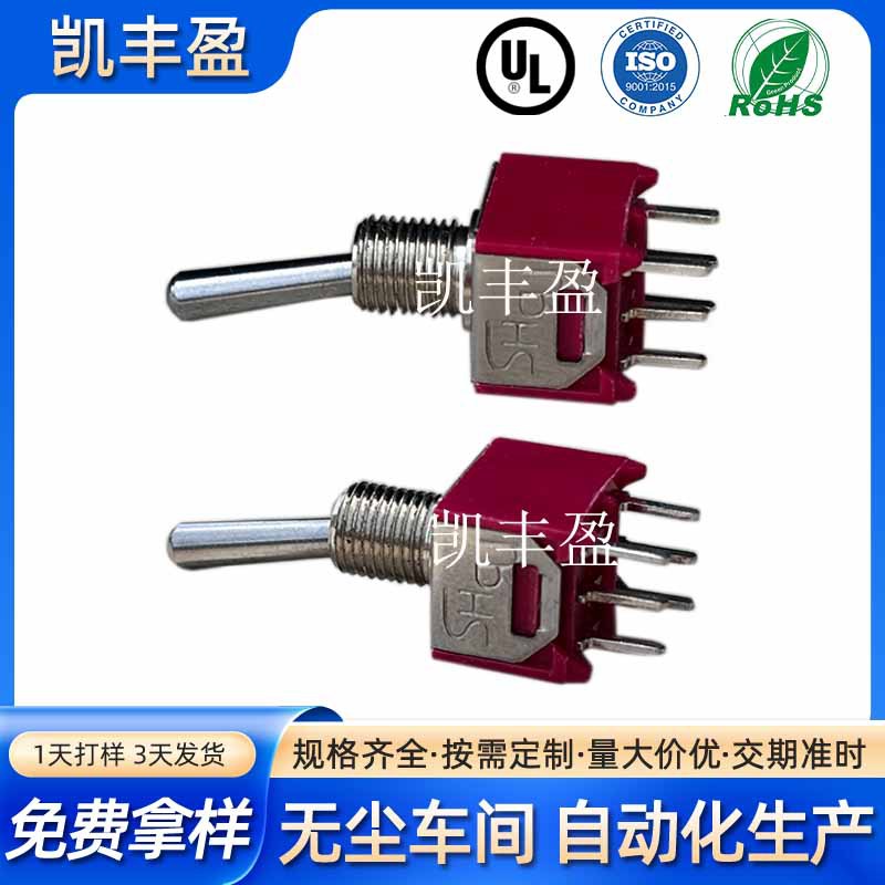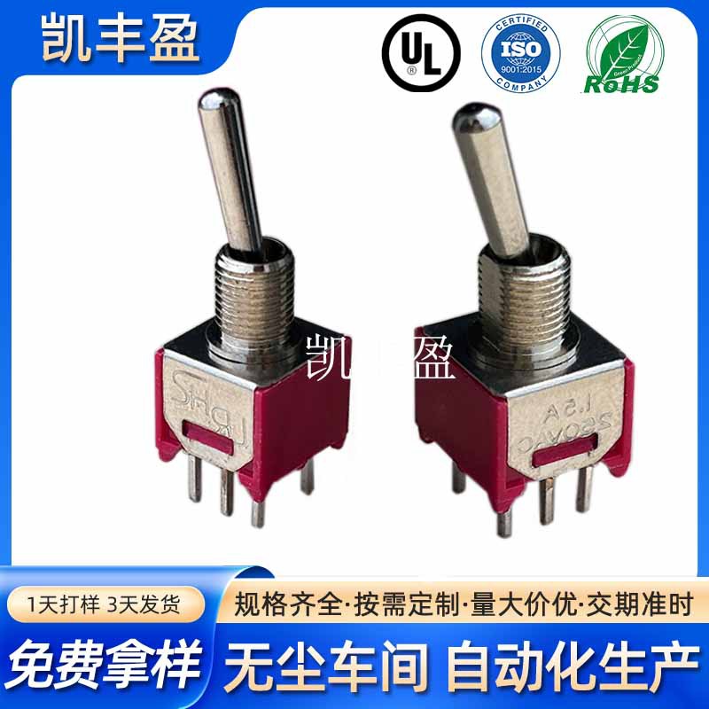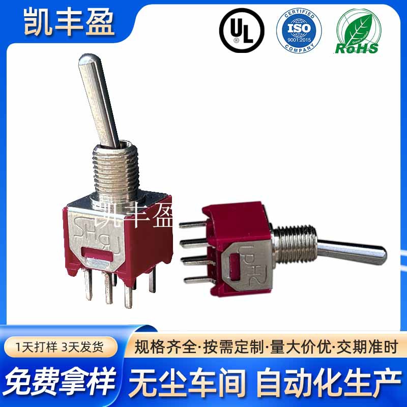 钮子开关六脚两档 双路双刀单掷M5mm 拨动摇头摇臂摇摆扭子开关SH