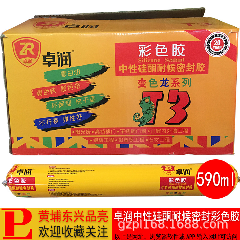 卓润彩色胶有色玻璃胶红色灰色咖啡色木门色黄色米黄密封胶结构胶
