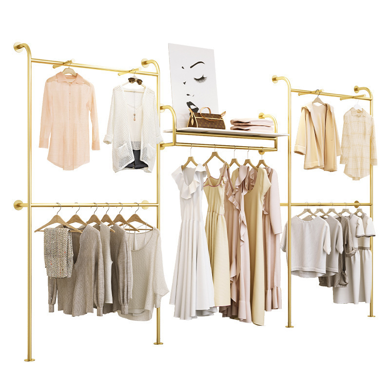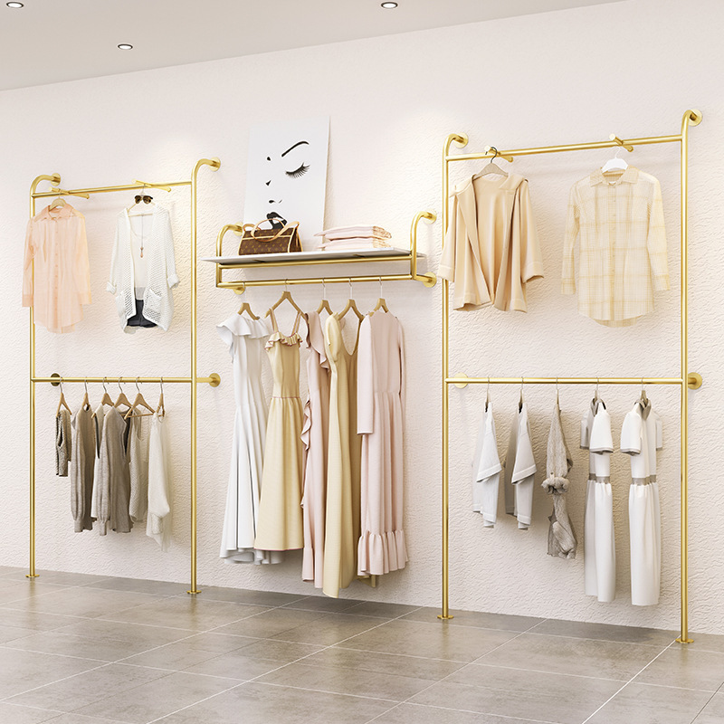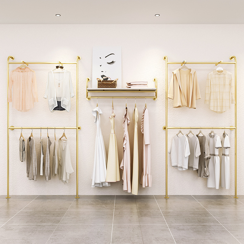 简约服装店金色展示架双层正挂架组合直播间女装展示衣服架挂衣架