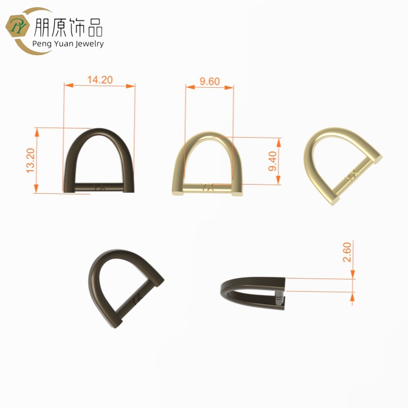 锌合金鎏金D扣 箱包配件包带连接马蹄环扣半圆包扣挎包d字型扣环