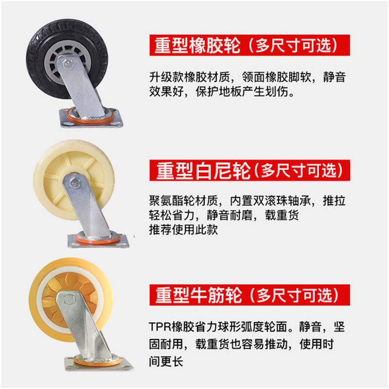 | 规格型号 | 120*80折叠配6寸重型橡胶静音轮 | 规格型号 | 90*60固定配5寸重型白尼轮(不静音) |