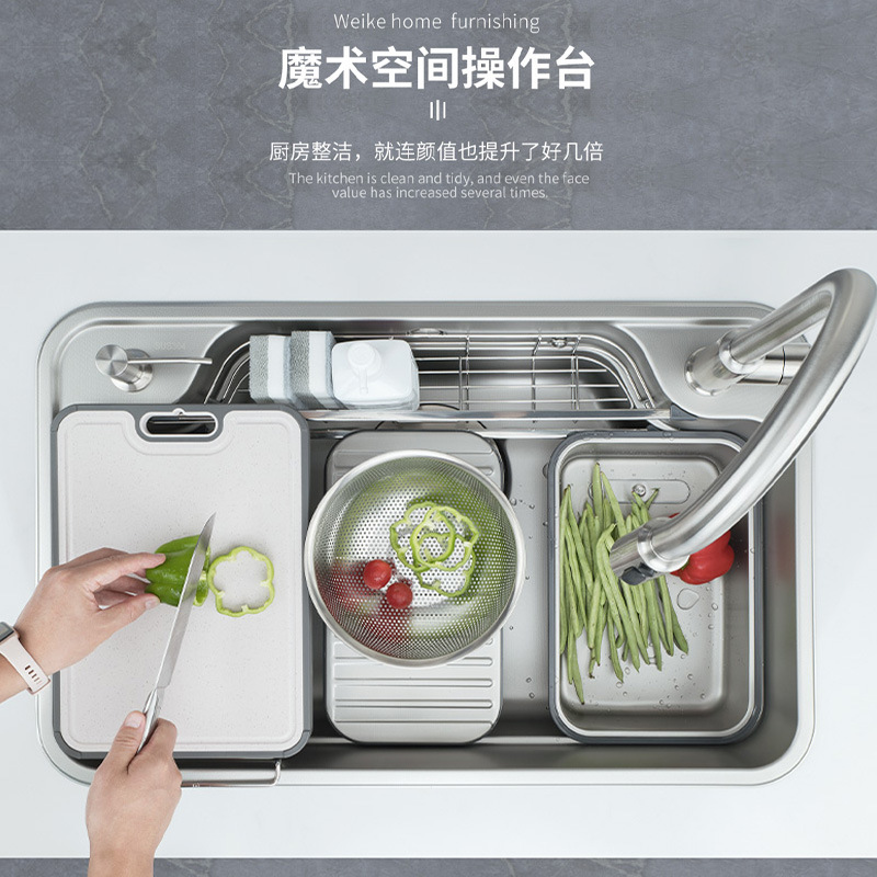加厚304不锈钢家用水槽套装 纳米银压纹多功能日韩式大单槽洗菜盆