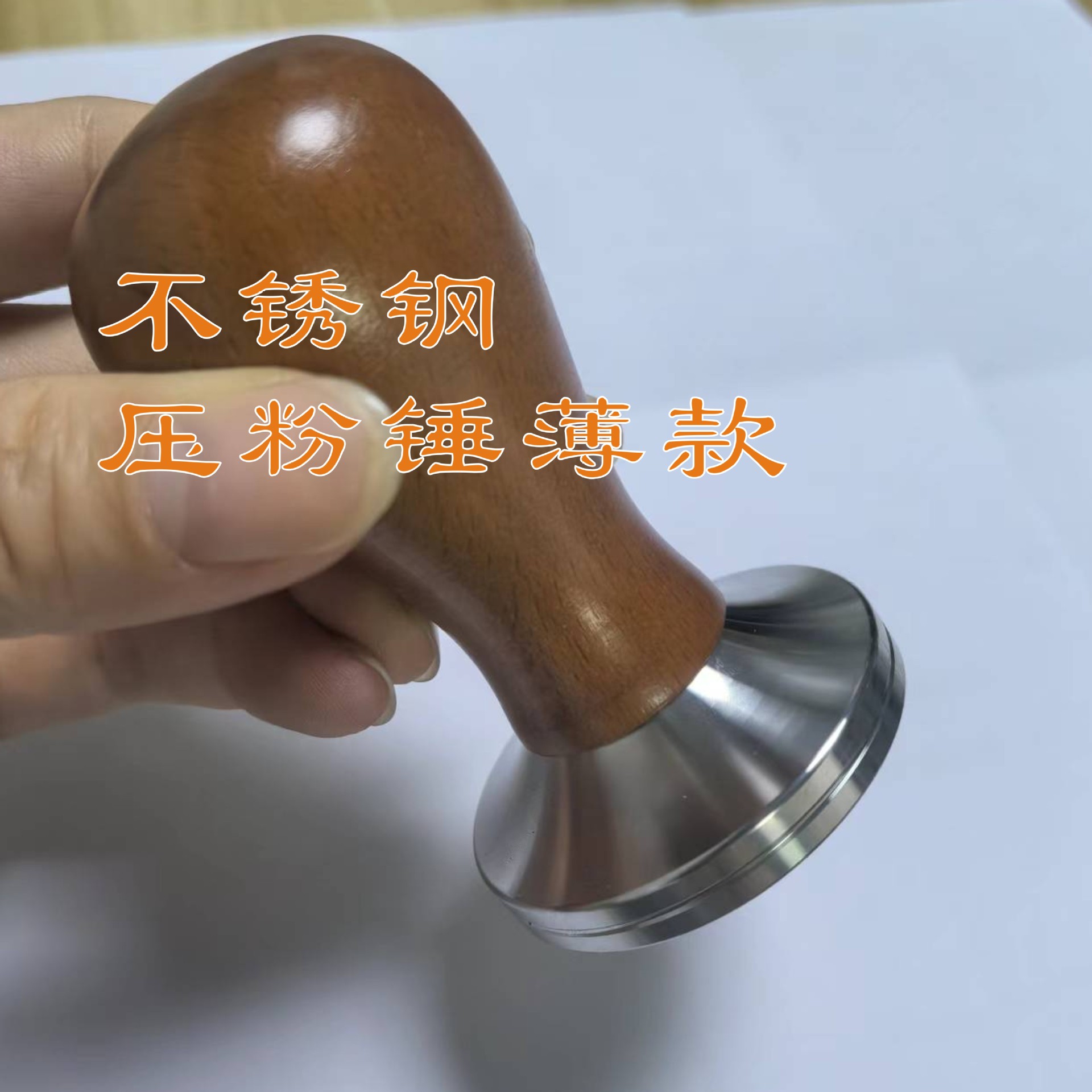 咖啡机 压粉器304不锈钢薄款压粉锤实心不锈钢加木柄压粉器