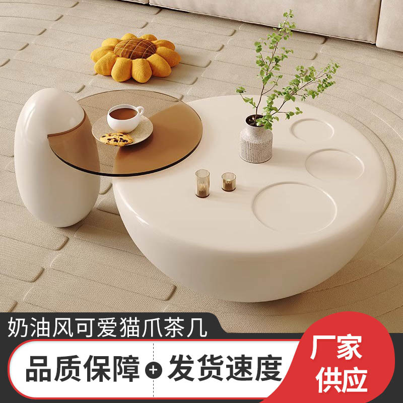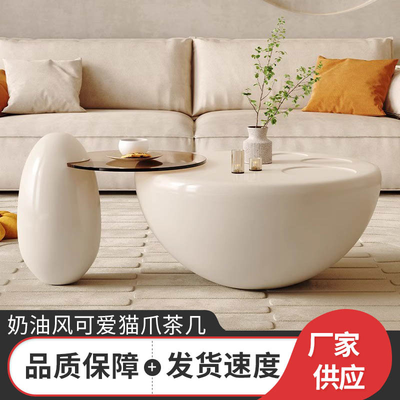 奶油风法式茶几创意猫爪可爱小圆几厂家供应简约室内客厅茶几组合