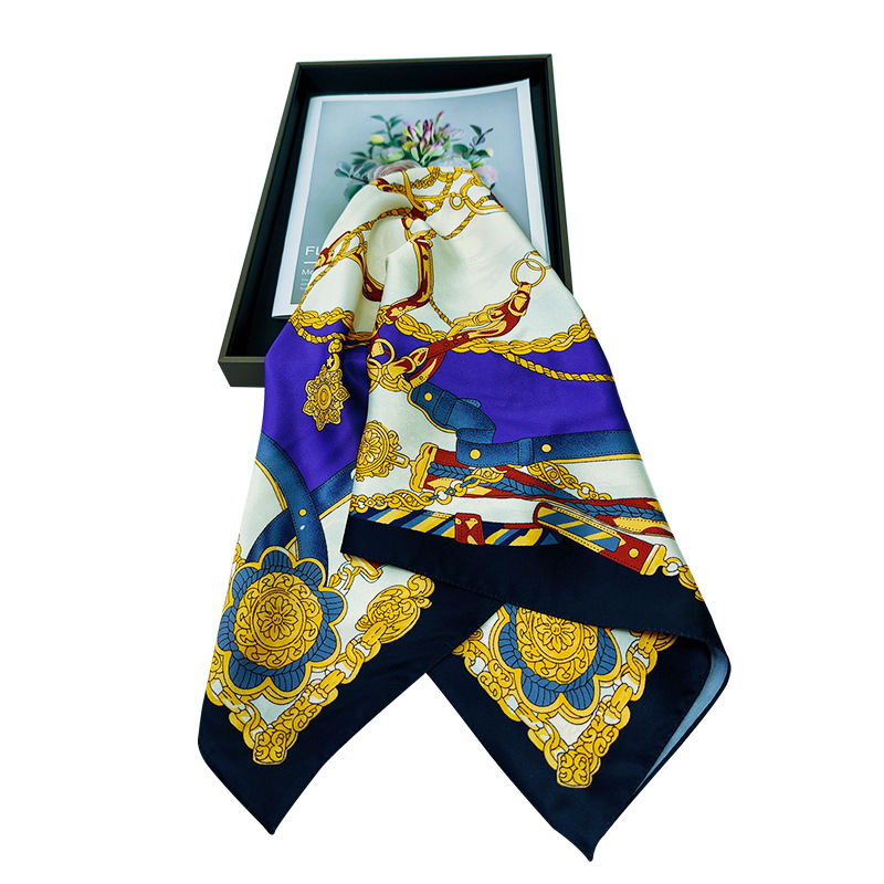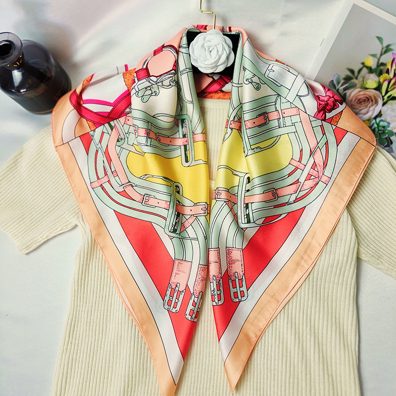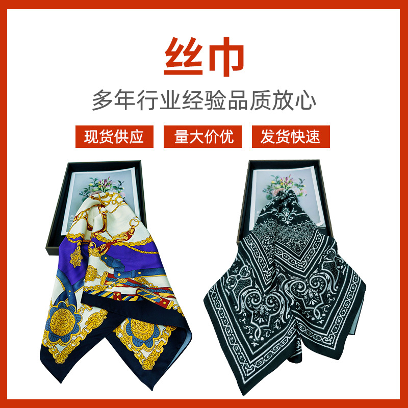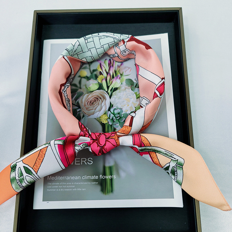花型丝巾批发仿真丝斜纹缎小方巾女春秋通勤护颈围脖薄围巾国风