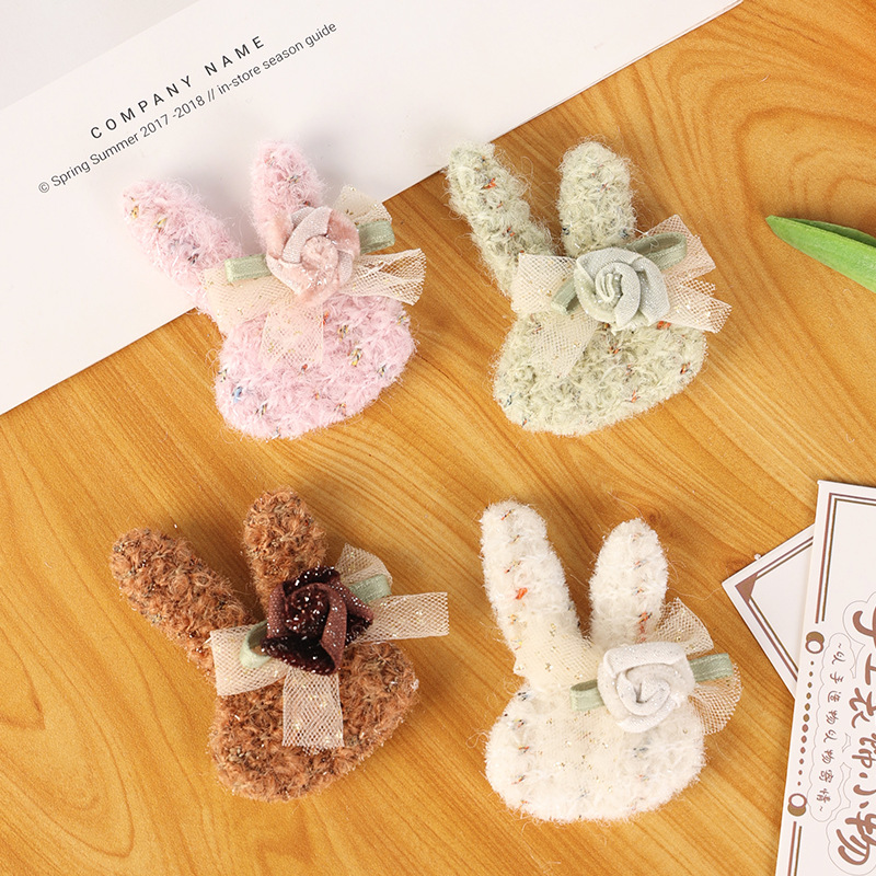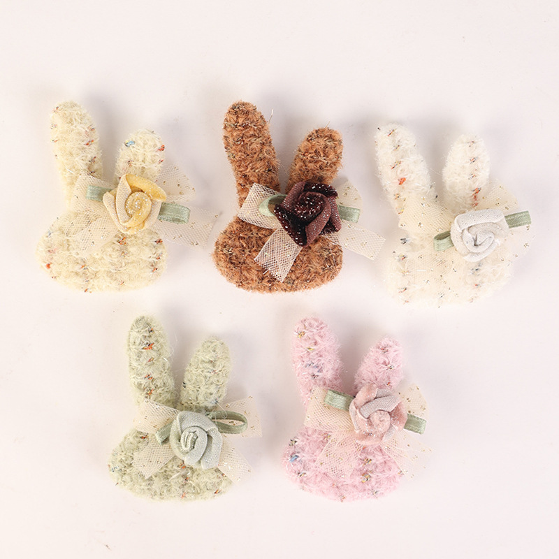 爆款清新可爱兔头立体毛毡 玫瑰网纱手套服装鞋帽配饰 义乌辅料