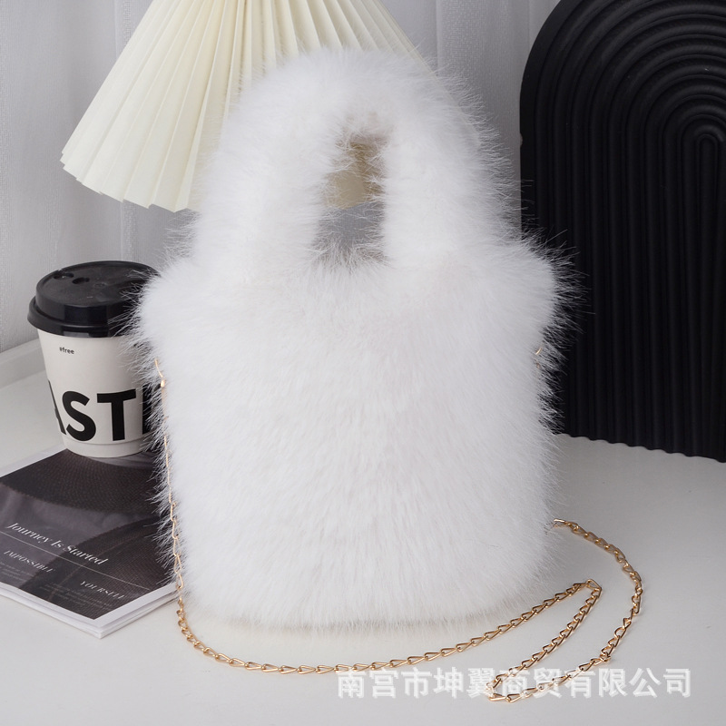 跨境毛毛包百搭斜挎包高级质感单肩包大容量狐狸毛绒手拎包水桶包
