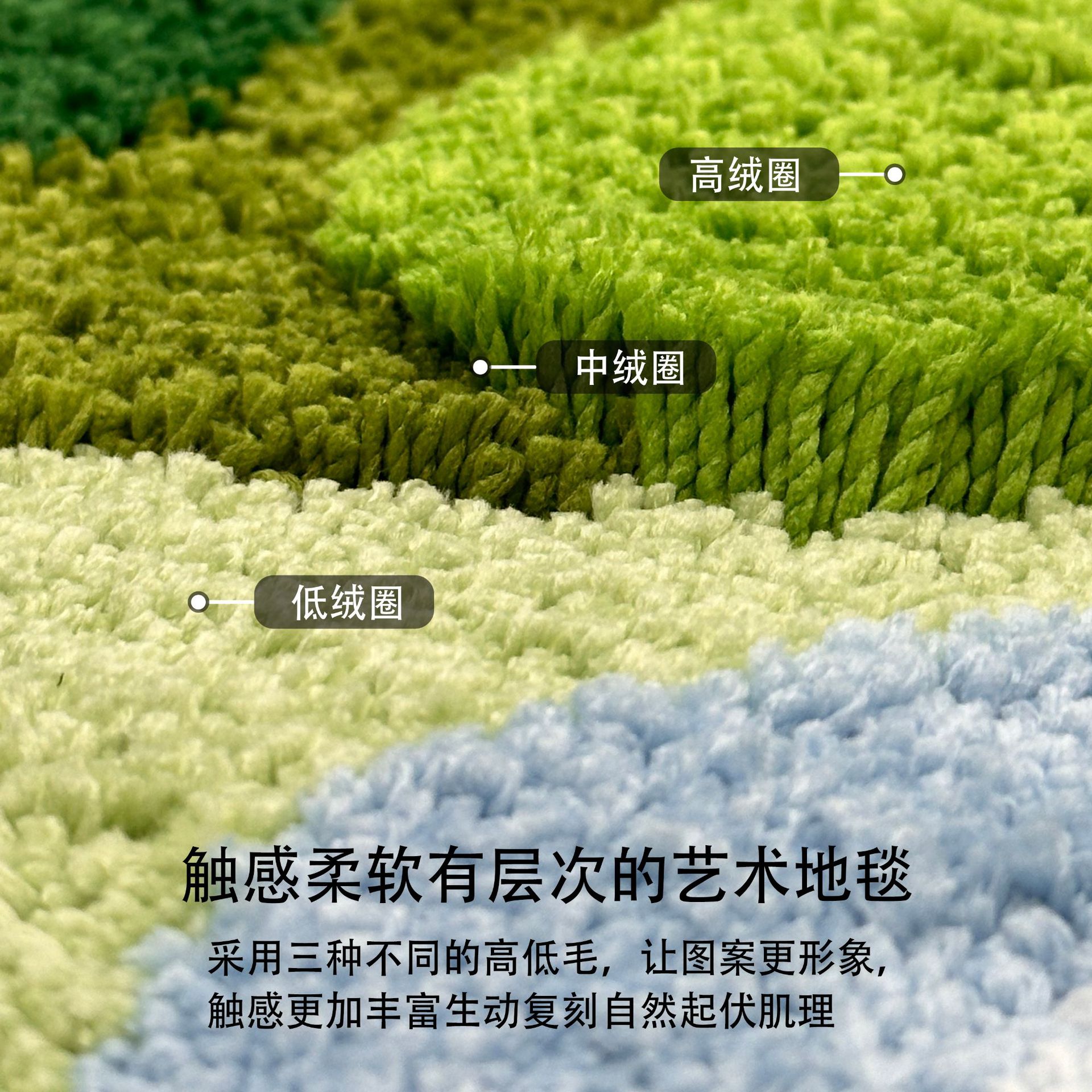 北欧异形地毯防滑脚垫轻奢植绒苔藓柔软森林海浪茶几客厅卧室地垫