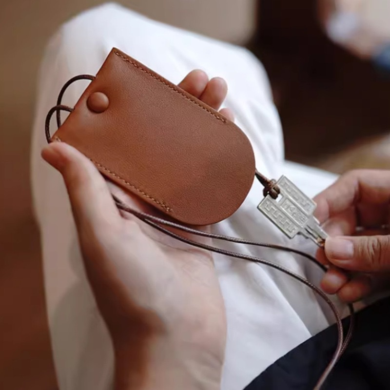 凹造型挂脖钥匙扣春夏pu复古挂皮革热销钥匙包多巴胺彩色钥匙挂链