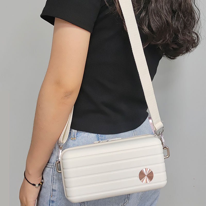 运动款硬壳斜挎邮差单肩洗漱过夜包7寸收纳化妆箱包礼品韩版便携