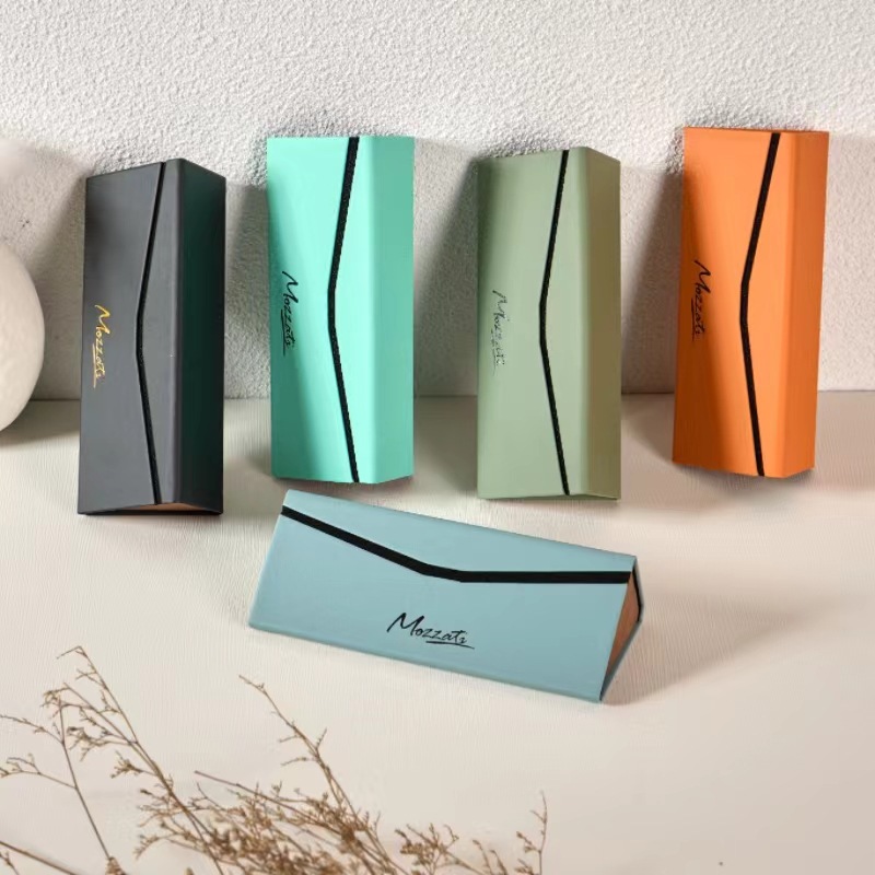 定做便携高级感v盖三角折叠墨镜太阳眼镜盒印logo店名手工眼镜盒