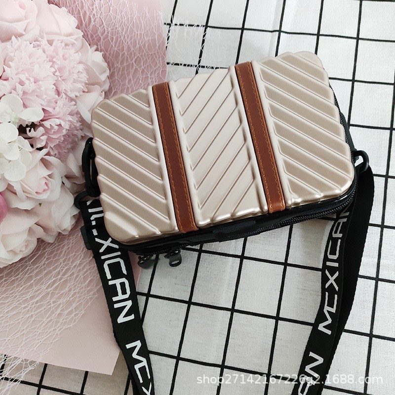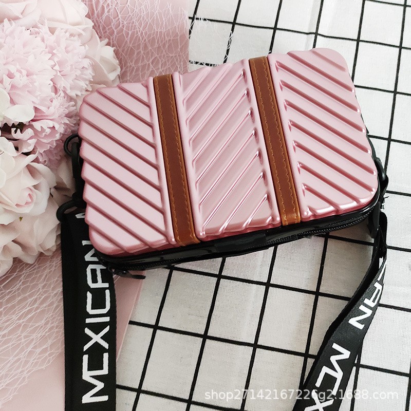 行李箱pc硬壳条纹斜跨个性百搭女包收纳硬壳小化妆包