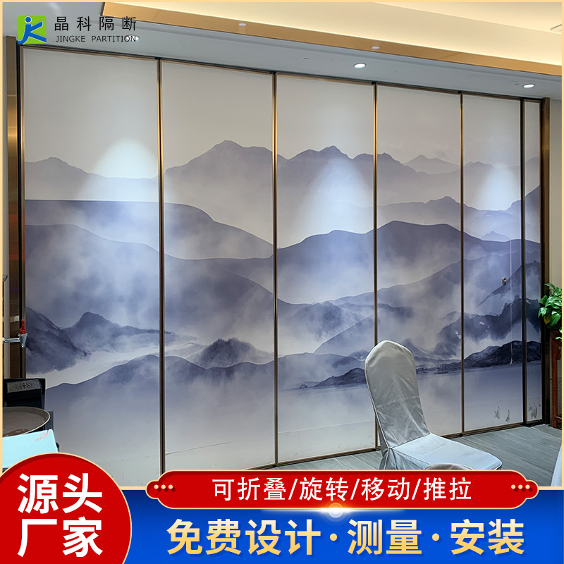 山水画国风贴画宴客厅隔断墙酒店玄关背景墙隔断来图设计酒店隔断