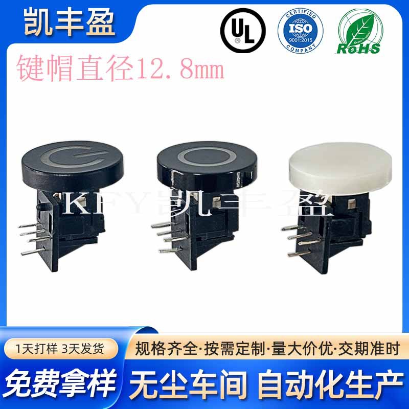 插件轻触开关 6X6X9侧按键带灯轻触开关镭雕键帽耐温90度弯脚卧式