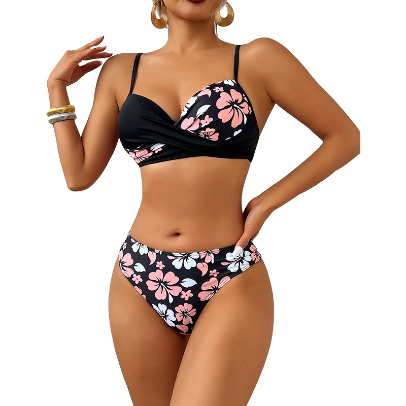 2024新款时尚性感分体印花泳装聚拢胸型凸显身材欧美跨境性感泳装