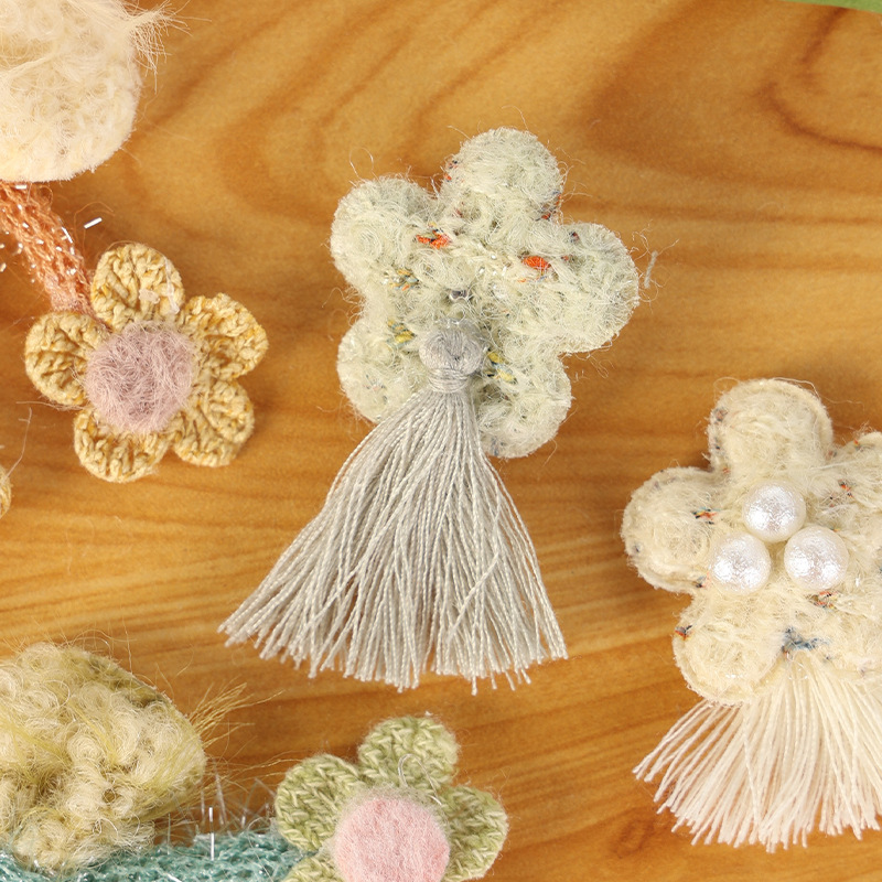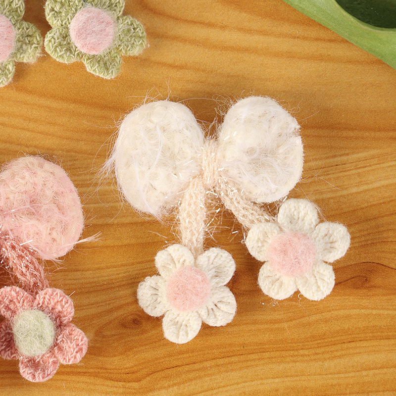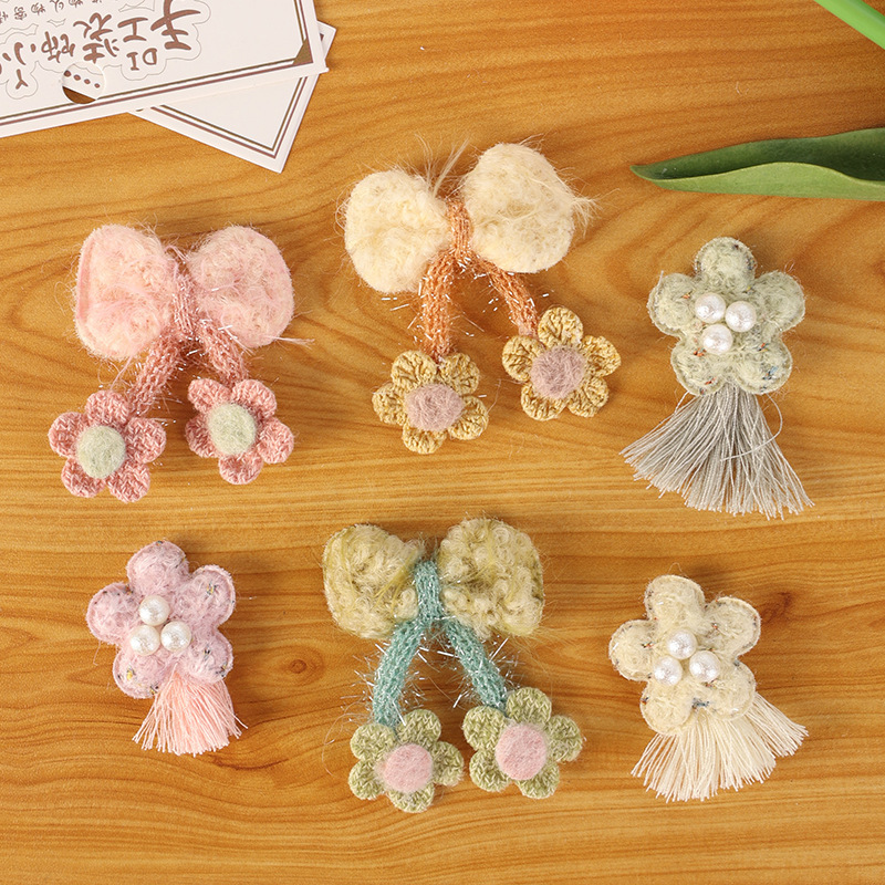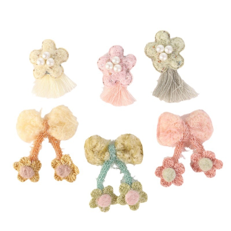 布艺清新毛绒打结蝴蝶结 流苏珍珠花秋服装发饰鞋包 义乌diy配饰