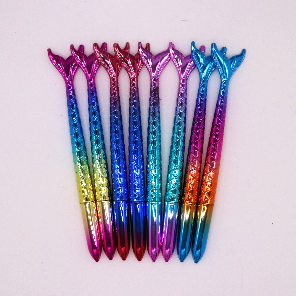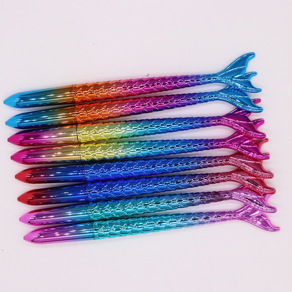 卡通ins风美人鱼中性笔0.5mm签字笔UV电镀渐变炫彩中性笔速干