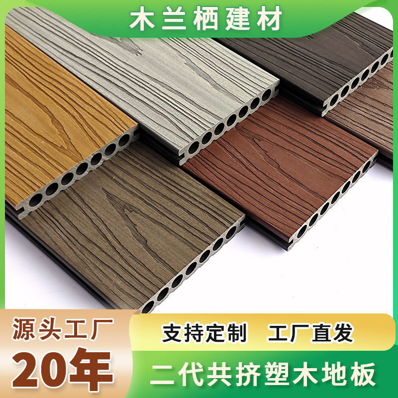 塑木地板厂家第二代圆孔共挤木地板防腐木栈道阳台户外木塑板