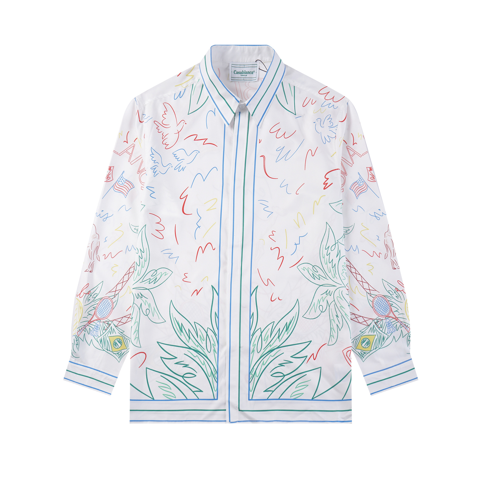 CASA 秋季流行卡萨布兰卡数码喷印男士花式衬衫时尚长袖T恤衬衫