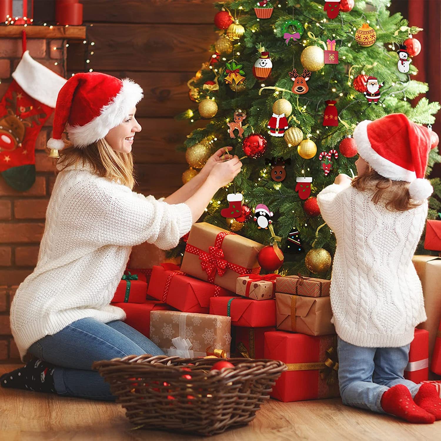新品迷你圣诞饰品圣诞树木制悬挂装饰圣诞老人雪人天使木艺