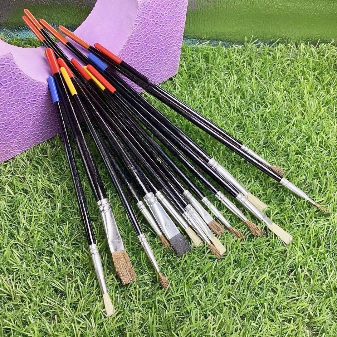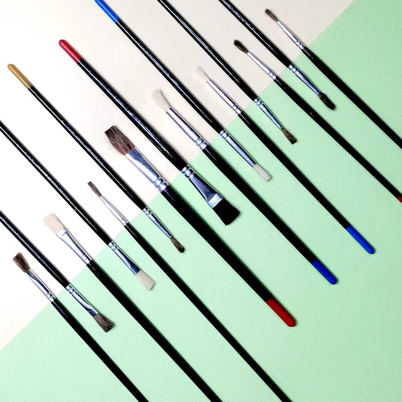 跨境15支猪鬃马毛木杆丙烯水粉水彩油画笔套装美术用品
