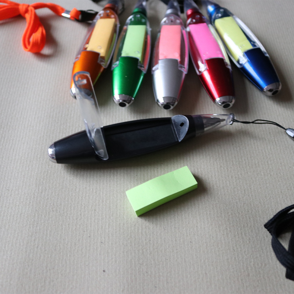 创意多功能便签圆珠笔 挂绳照明便签纸LED灯笔便携广告笔实用