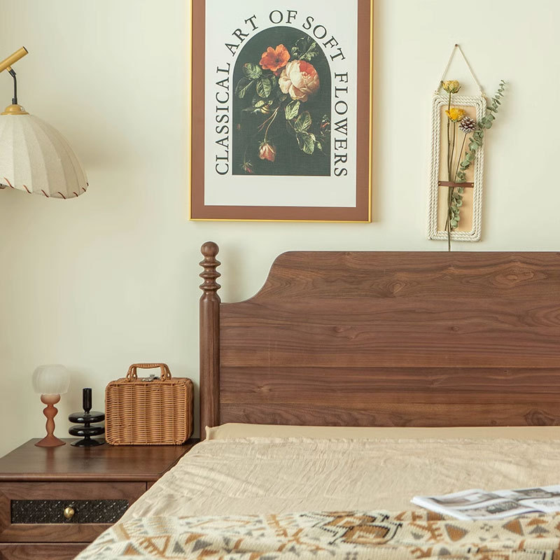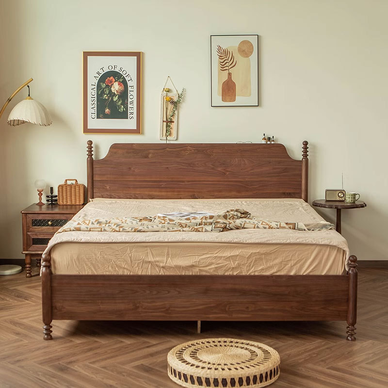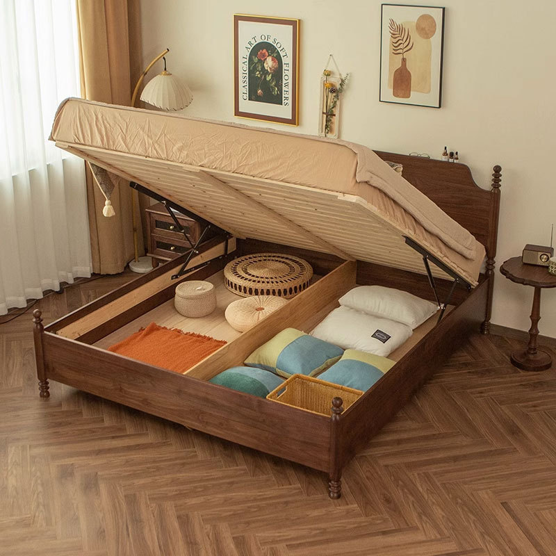 北美黑胡桃木气压储物床1.8米美式复古全实木悬浮高箱床双人大床
