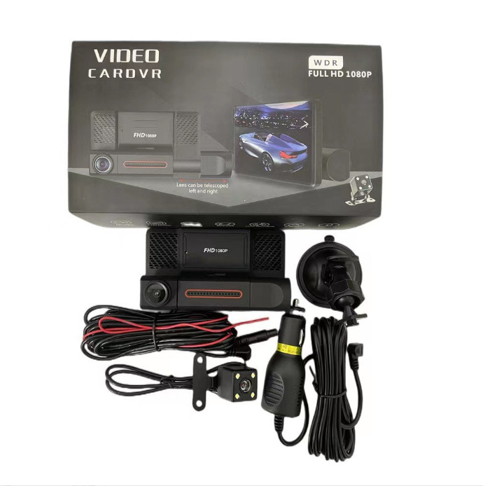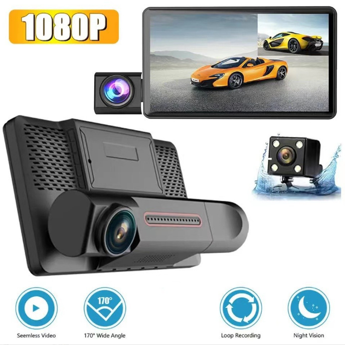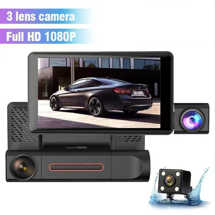 三镜头4寸行车记录仪 高清1080P带倒车影像 三录镜头行车记录器