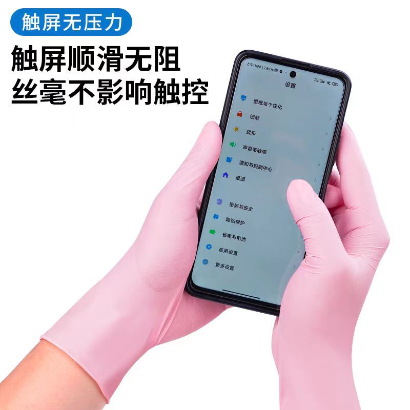 安帕洁 一次性樱花粉丁腈手套 食品餐饮防水防油家务清洁洗碗手套