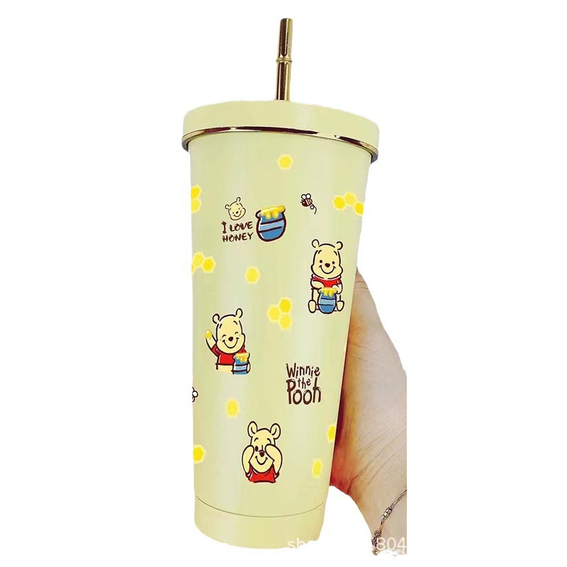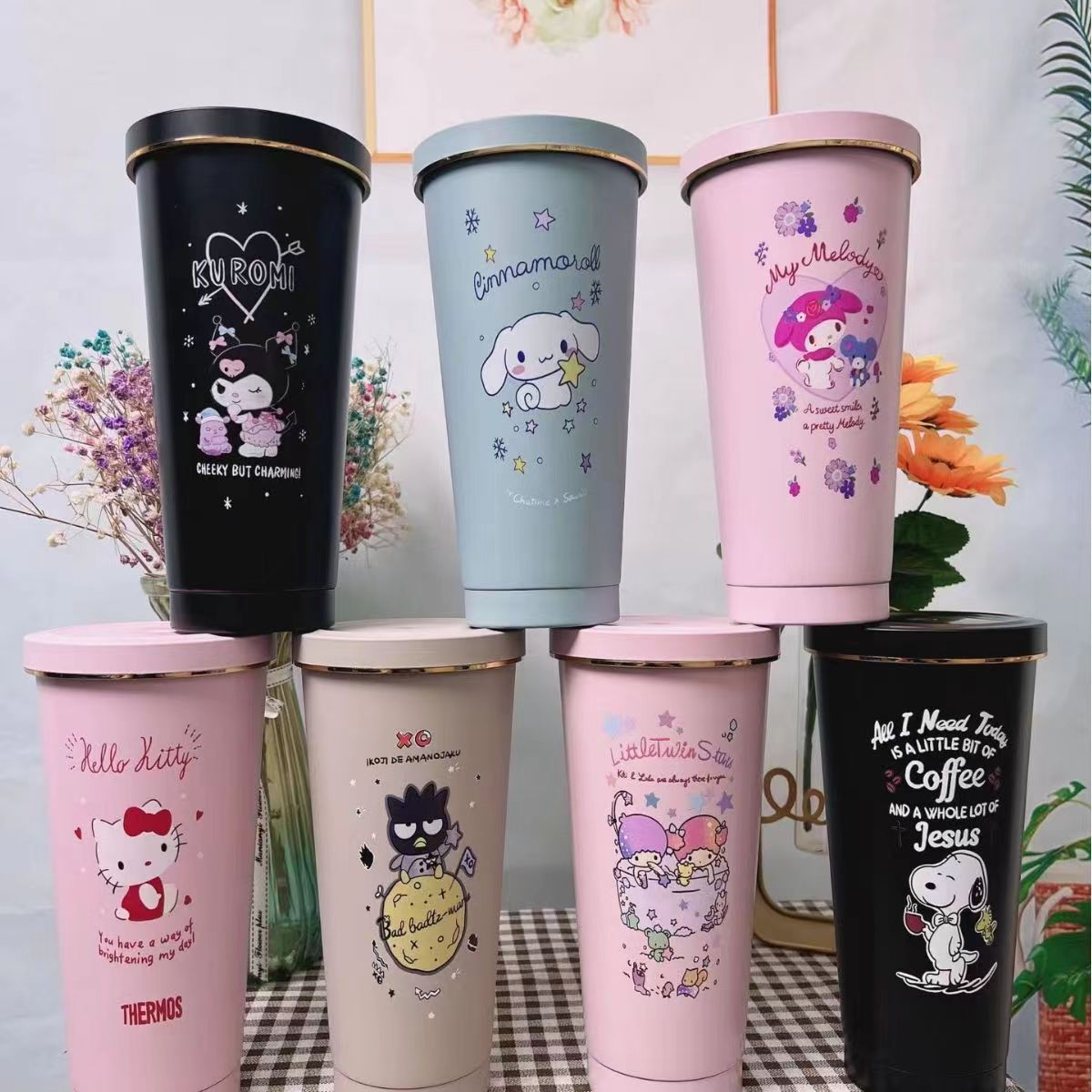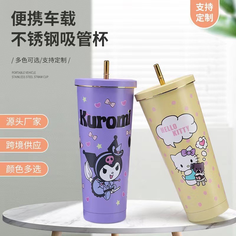 新款三丽鸥双层不锈钢卡通图案吸管杯金边盖子便携式大容量保冷杯