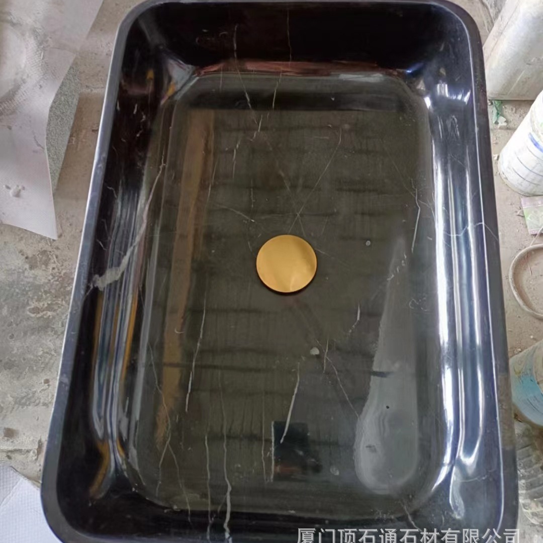 天然黑色大理石台上盆定 制时尚家用卫浴室阳台庭院异形石洗手盆