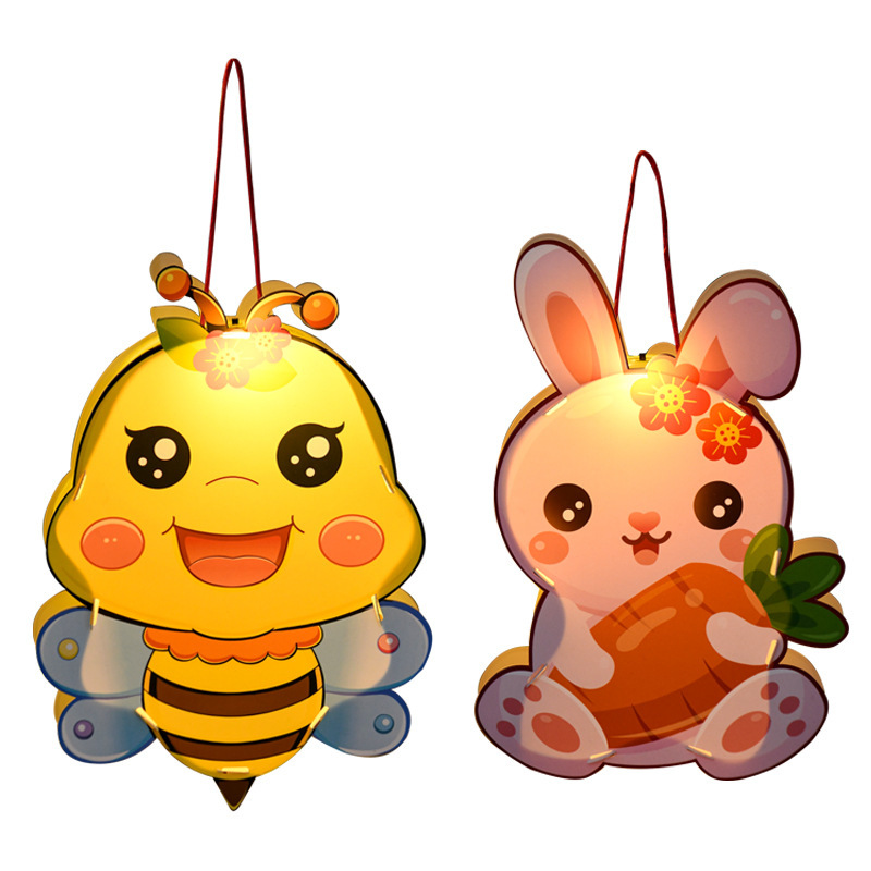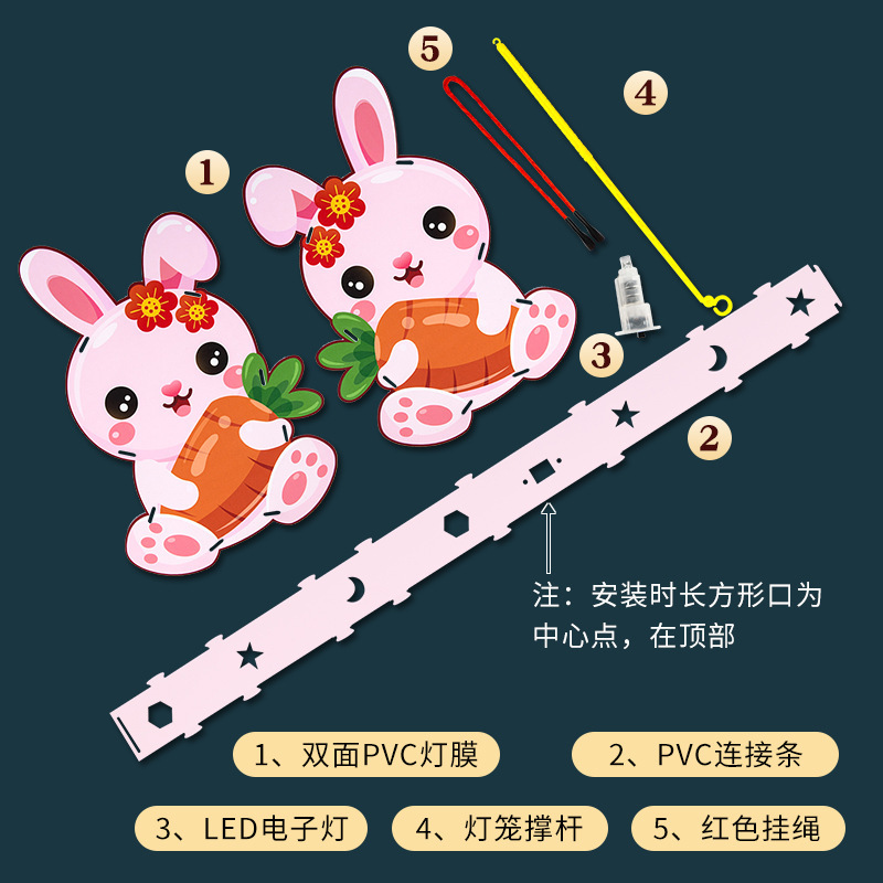 厂家直销中秋节pvc灯笼花灯幼儿diy材料手提发光卡通兔子灯笼