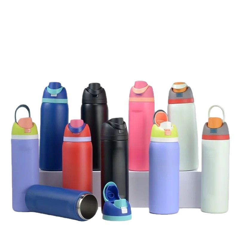 亚马逊304不锈钢保温水果杯大容量双饮运动水壶防漏手提弹跳水杯