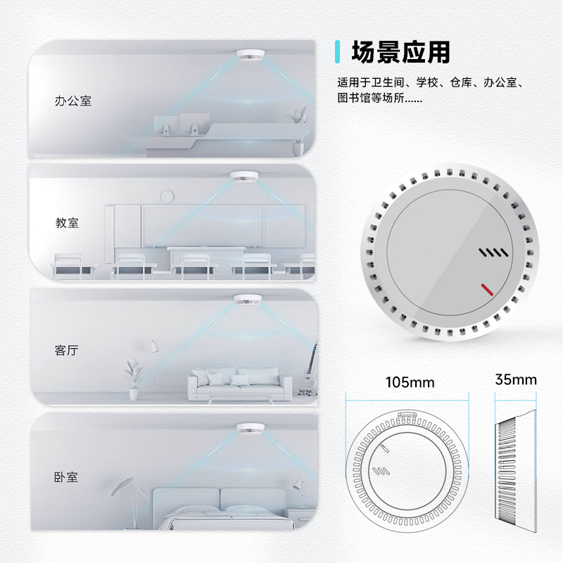 烟雾报警器中性包装工厂样机室内吸烟报警探测器空巢老人安全监护