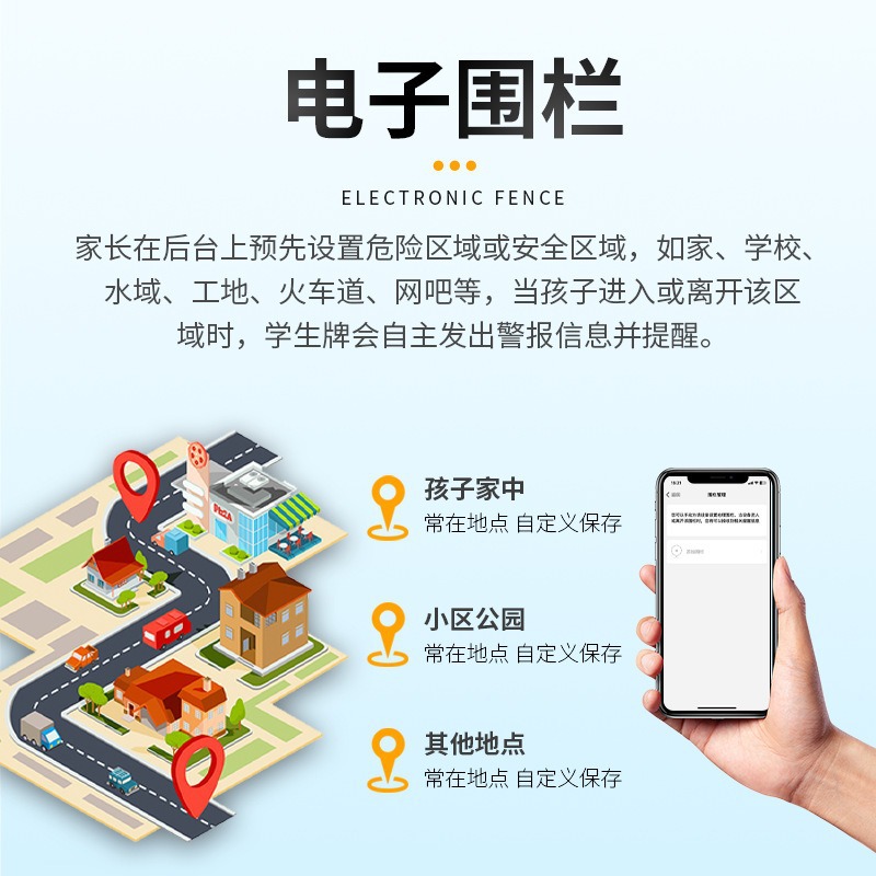 精准定位,历史轨迹回放,电子围栏,亲情号码和白名单:上课禁用,计步器,支持群聊,运动管理,SOS、通
