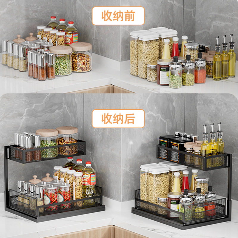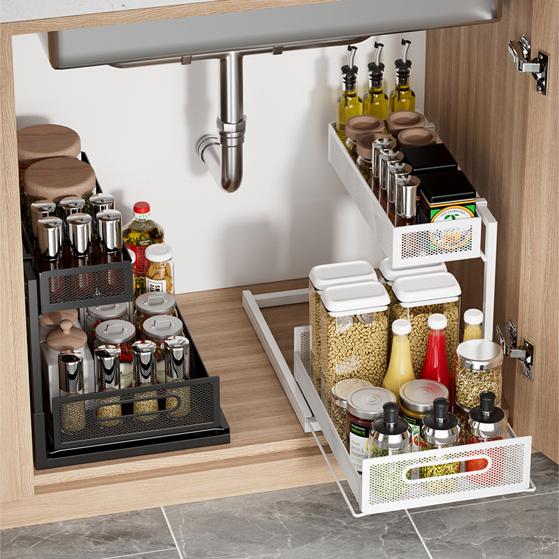 跨境厨房橱柜下水槽储物置物架收纳架抽拉式抽屉篮整理架子可拆装