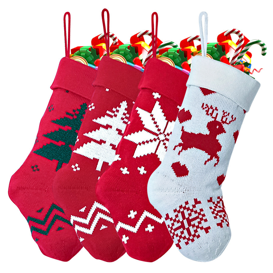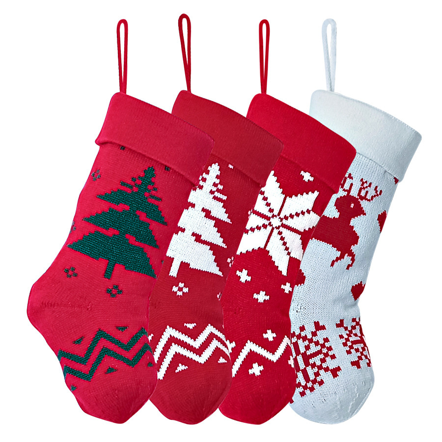 新款圣诞节装饰亚马逊跨境中针织袜套外贸针织圣诞袜礼物袋批发
