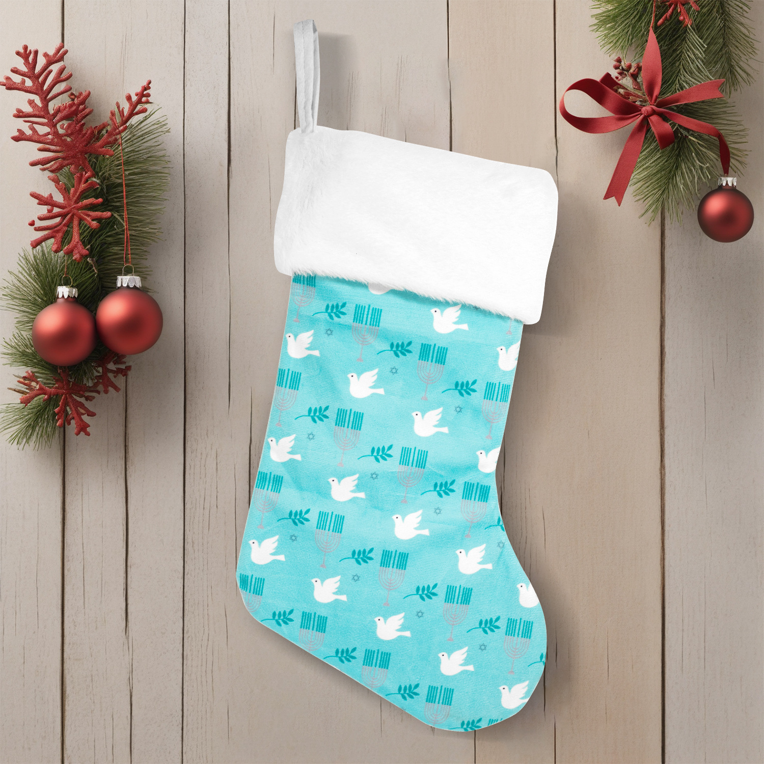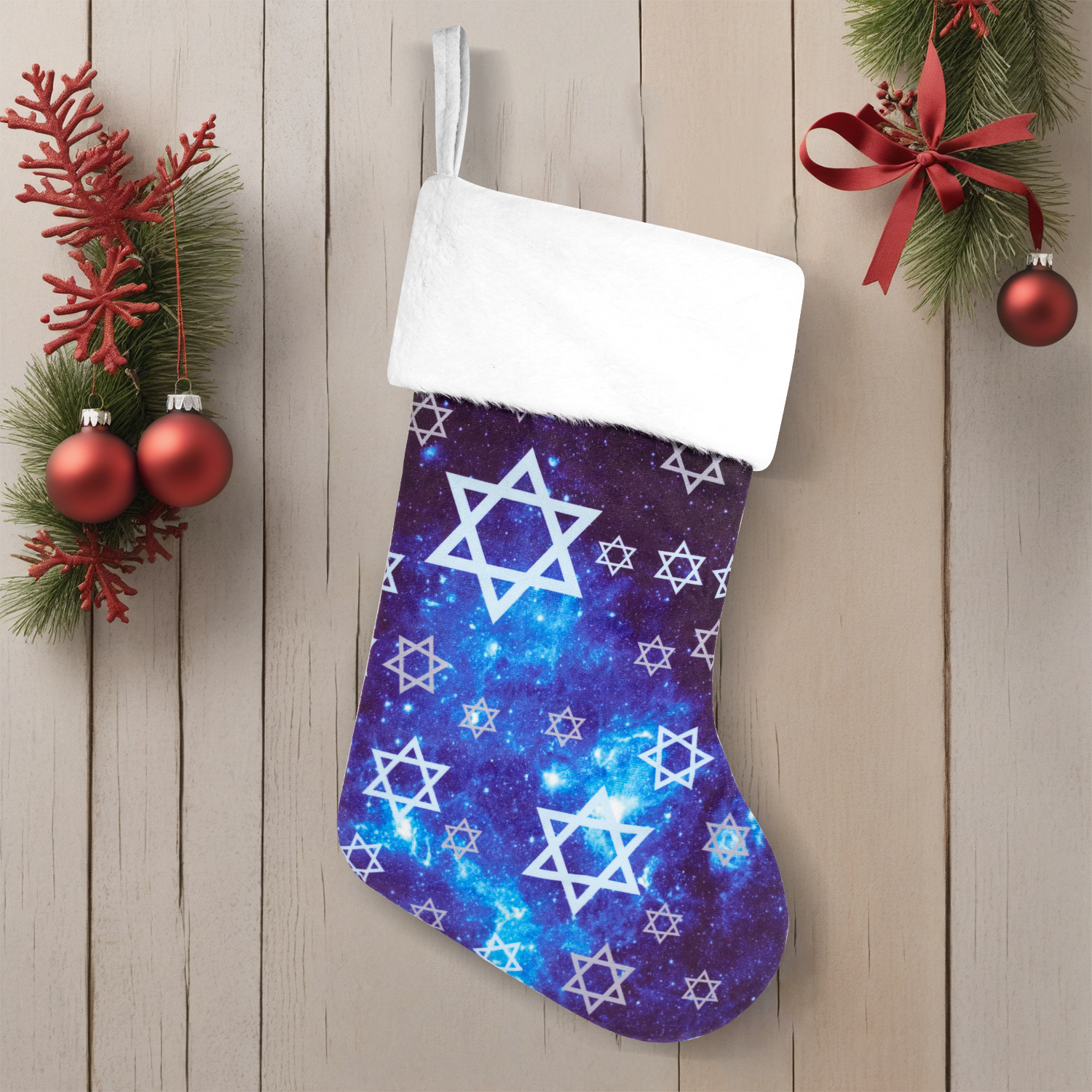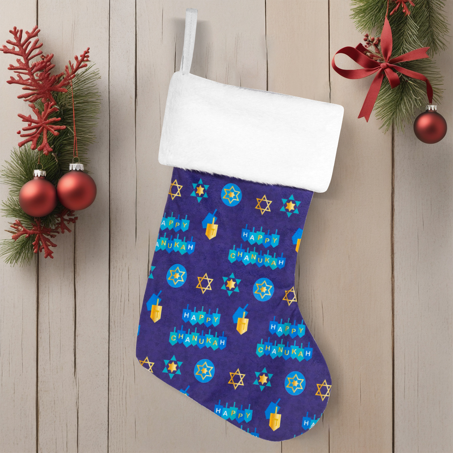 蓝色印刷袜新款圣诞装饰蓝色宝蓝色圣诞袜烫印雪花纹毛绒袜批发