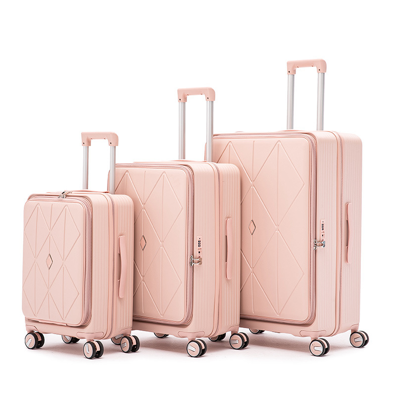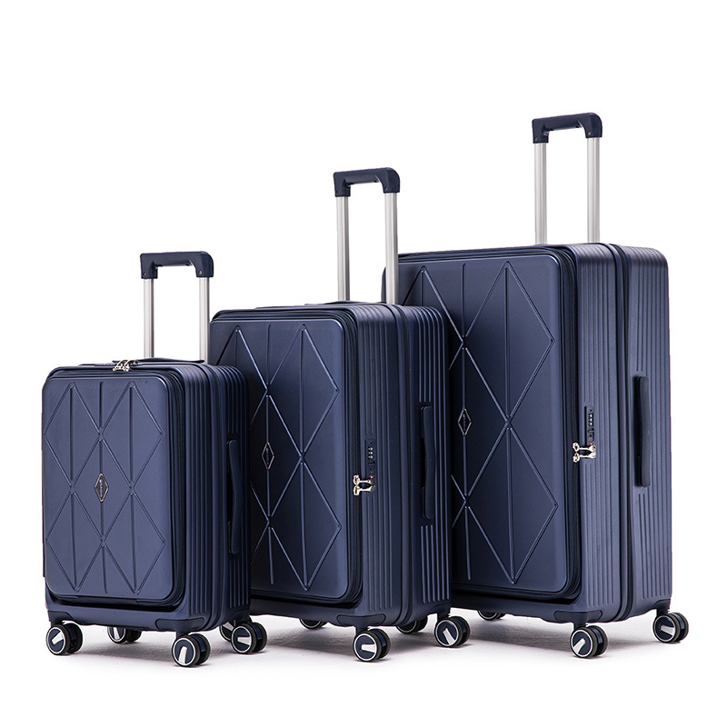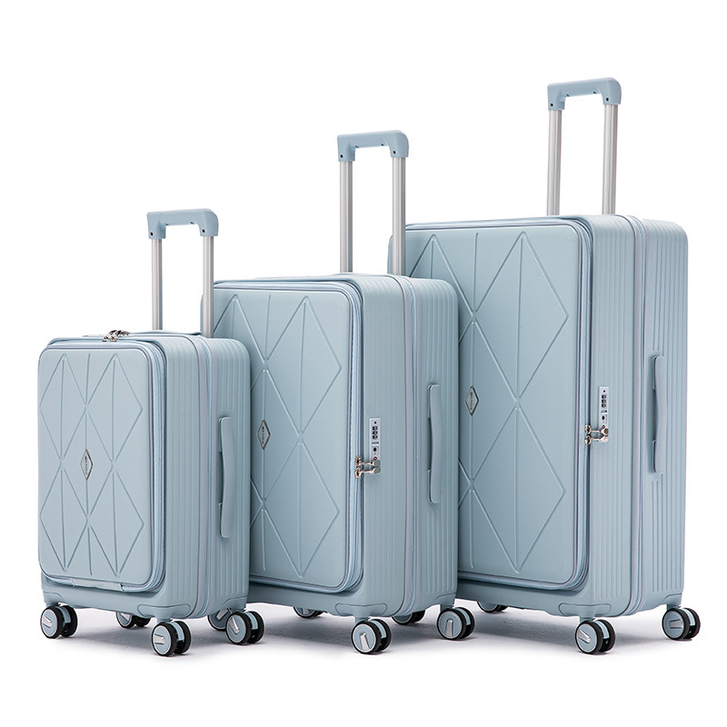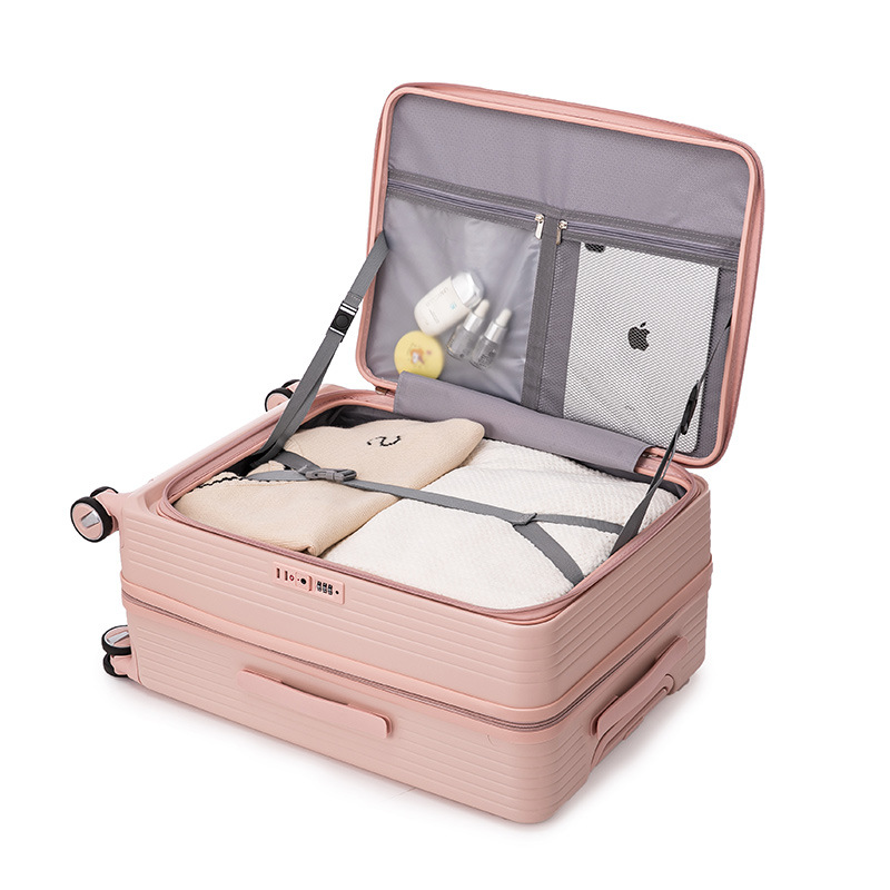现货24寸大容量前开盖纯色拉链行李箱简约款便携密码锁旅行拉杆箱