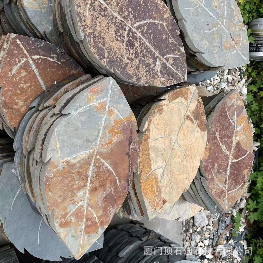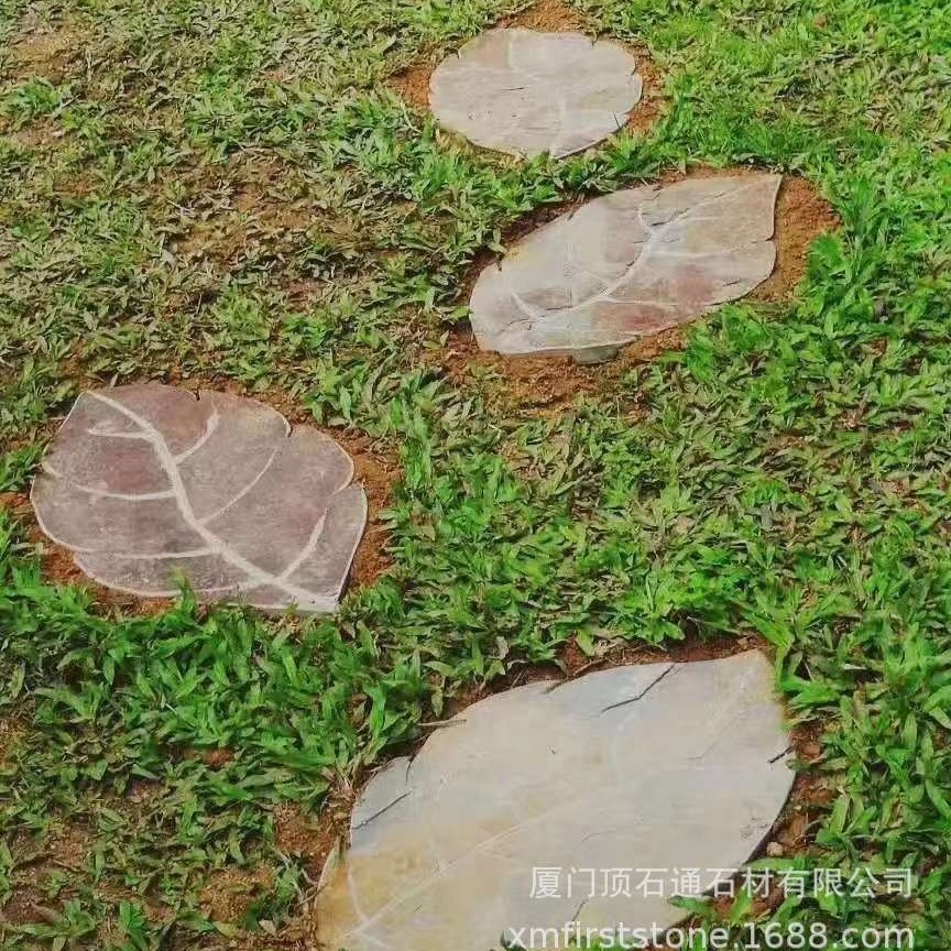 天然青石板厂家定 制树叶批发装饰户外汀步石庭院草坪铺路组合板